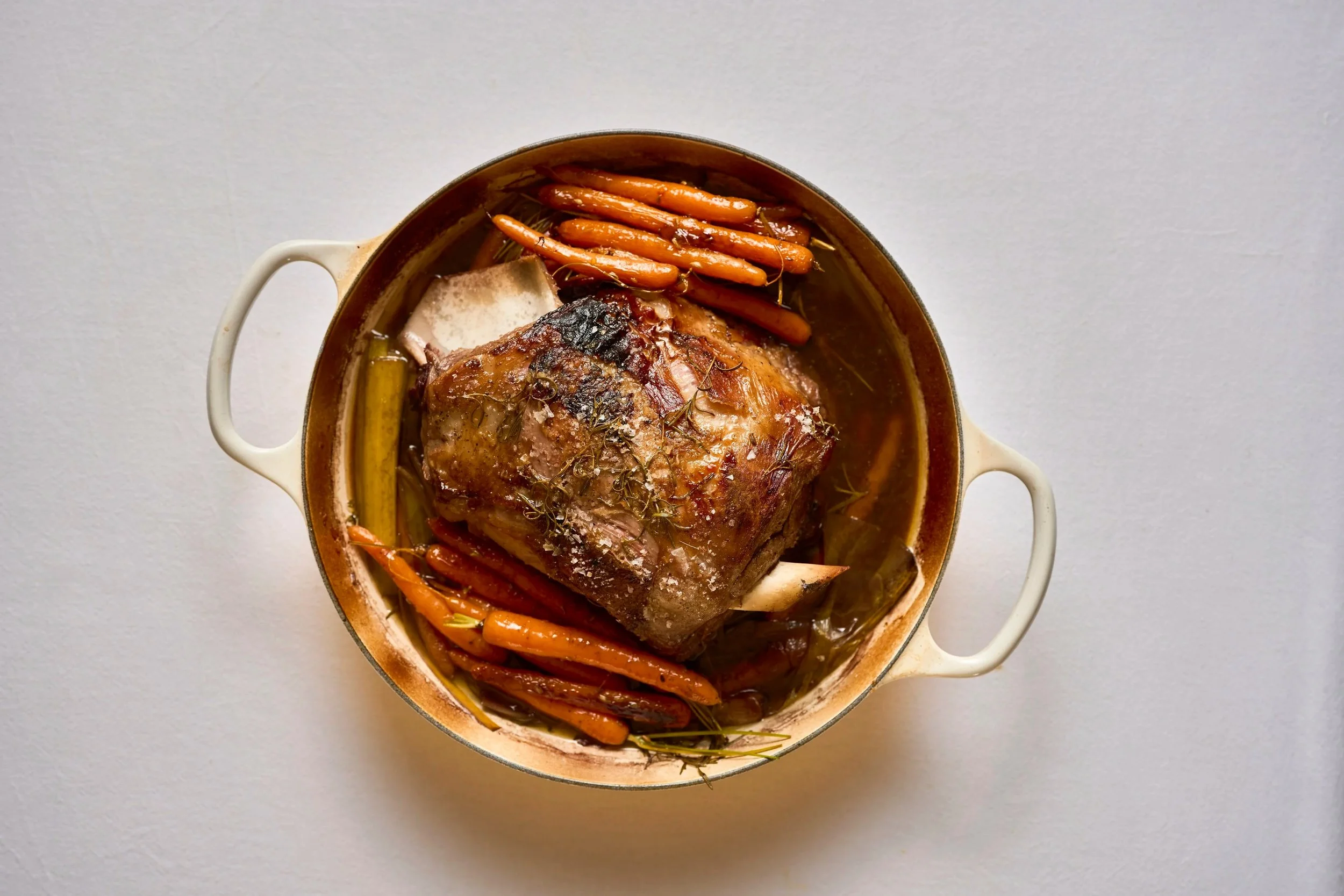 To serve: Pile lamb onto a platter and spoon over its juices. Scatter honeyed carrots alongside. Simple, rustic, and built for autumn tables.